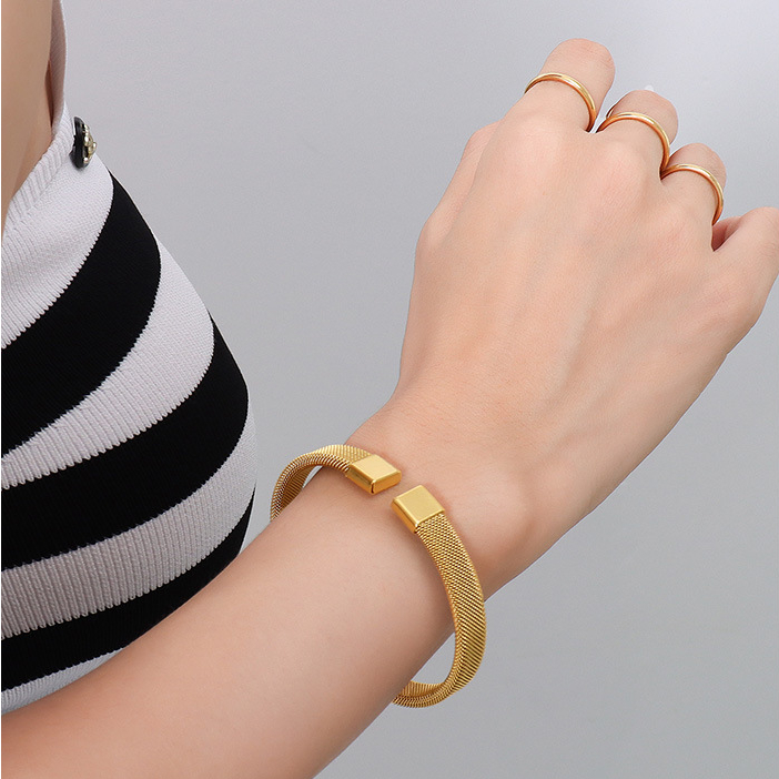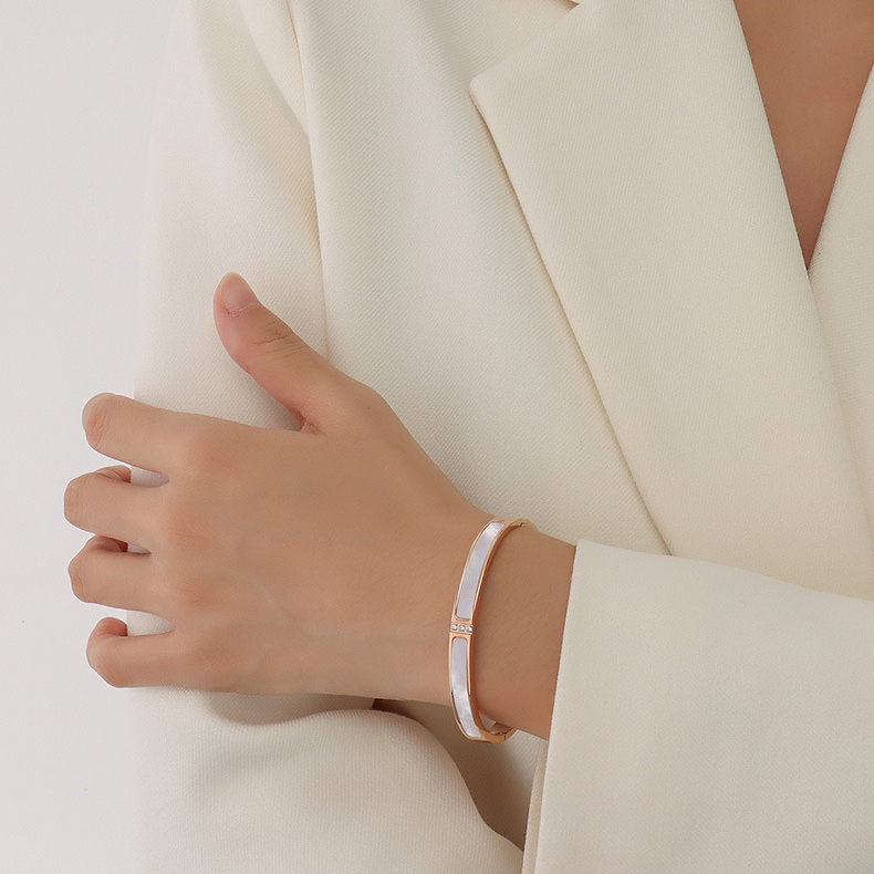 商品14-Double Black Stripes With Three Diamonds Inlaid Bangle