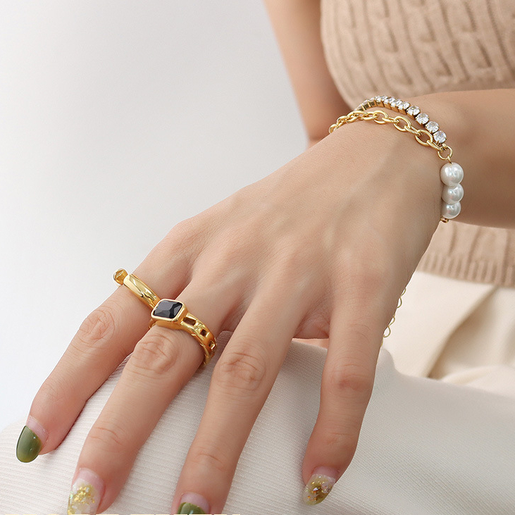 Double Layer Curb Chain Splicing Gemstone Bracelet