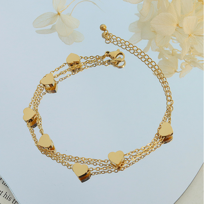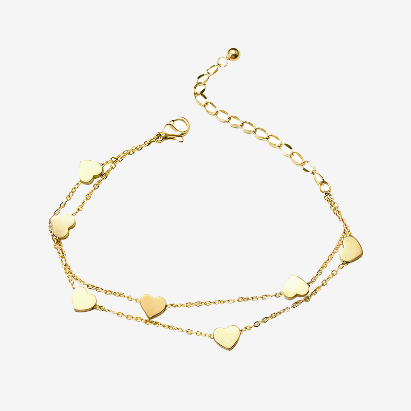商品13-Double Layer Skinny Chain Splicing Hearts Bracelet