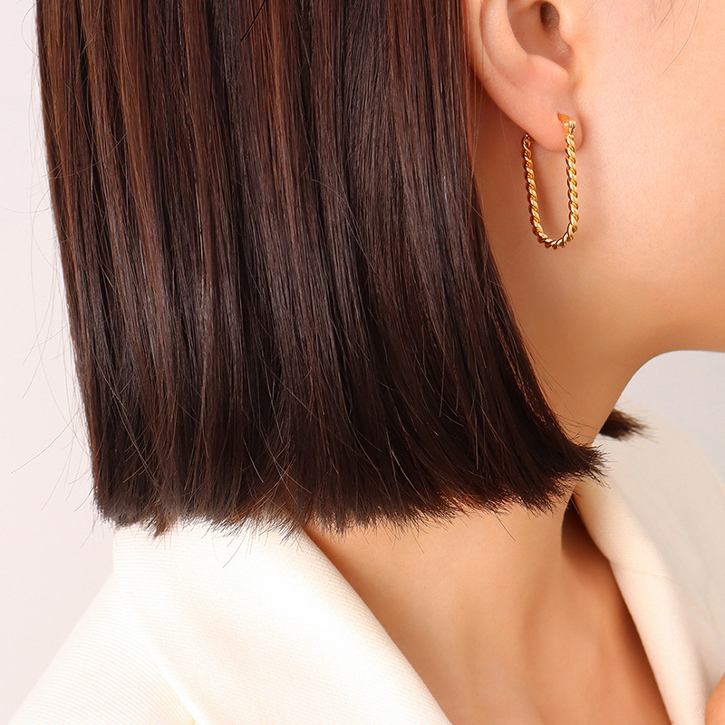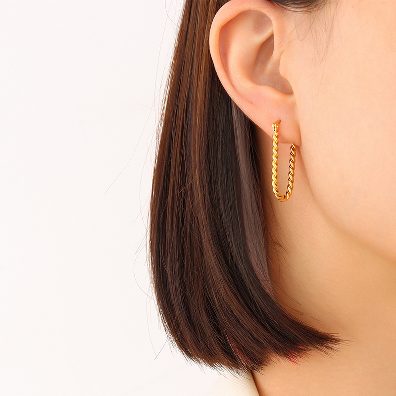 Twisted Texture U Shape Hoops
