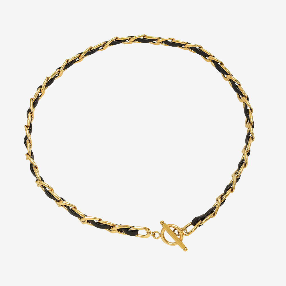 OT Buckle Leather Cord Gold Chain Necklace & Bracelet Set