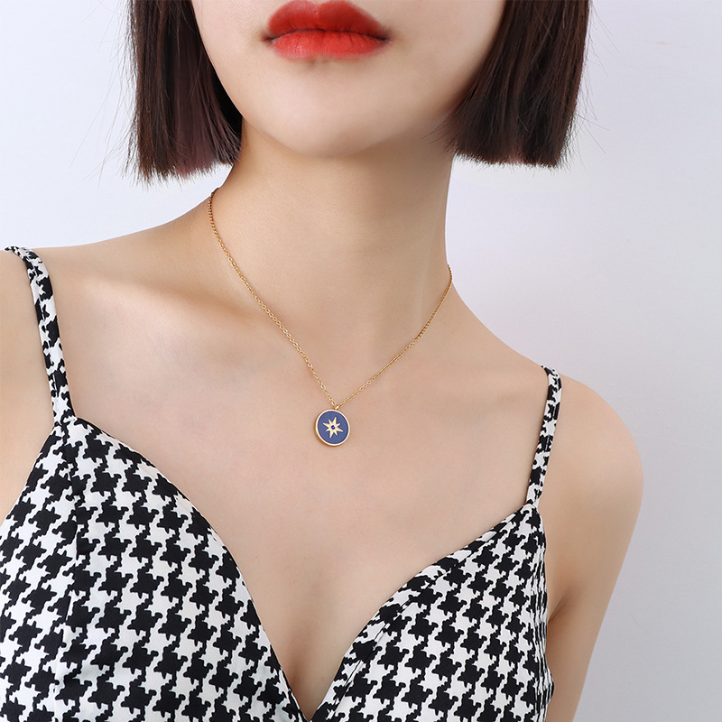 Stars & Moon Square Plate Lucky Pendant Necklace