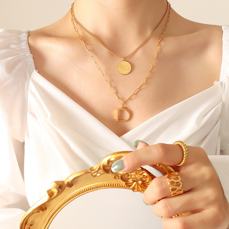 Double Layer Round Plate & Letter D Pendant Necklace Set