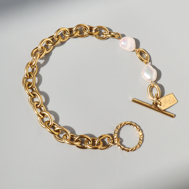 Light up your wrist with our LaFavour Splicing Series! Gentle pearl splicing chunky chain presents that modern fashion mixture. OT buckle makes it easy to put on and take off. Have a try!