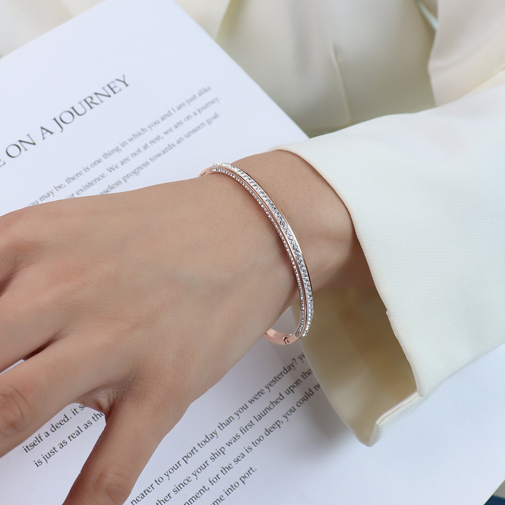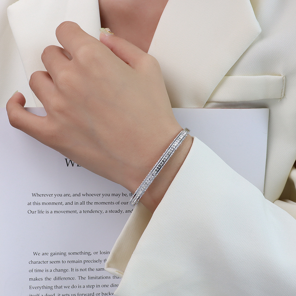 商品17-Half Side Diamonds Inlaid Clip Buckle Bangle