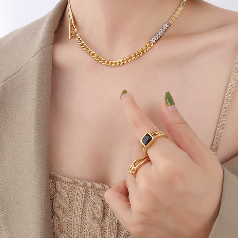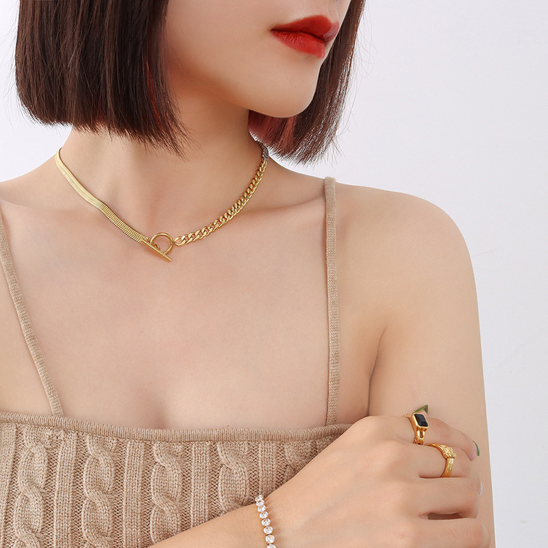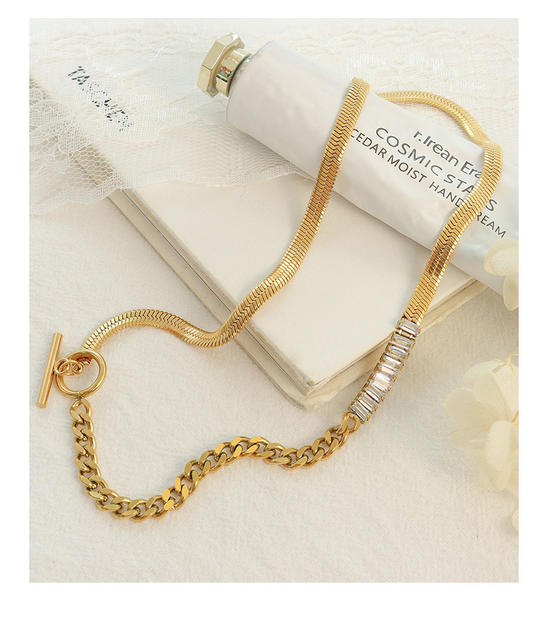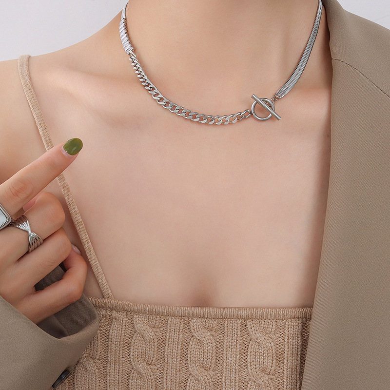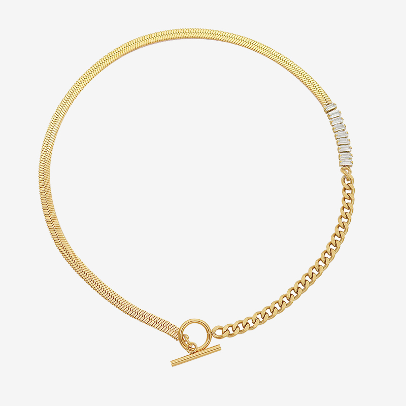 OT Buckle Splicing Diamonds & Blade Chain Necklace