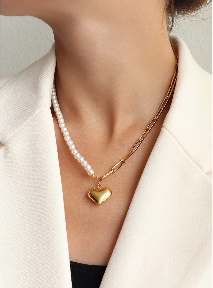Pearls Splicing Skinny Chain With Hollow Heart Pendant Necklace