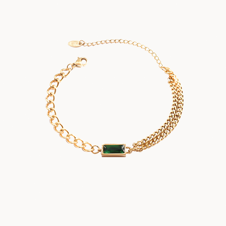 Double Layer Curb Chain Splicing Gemstone Bracelet