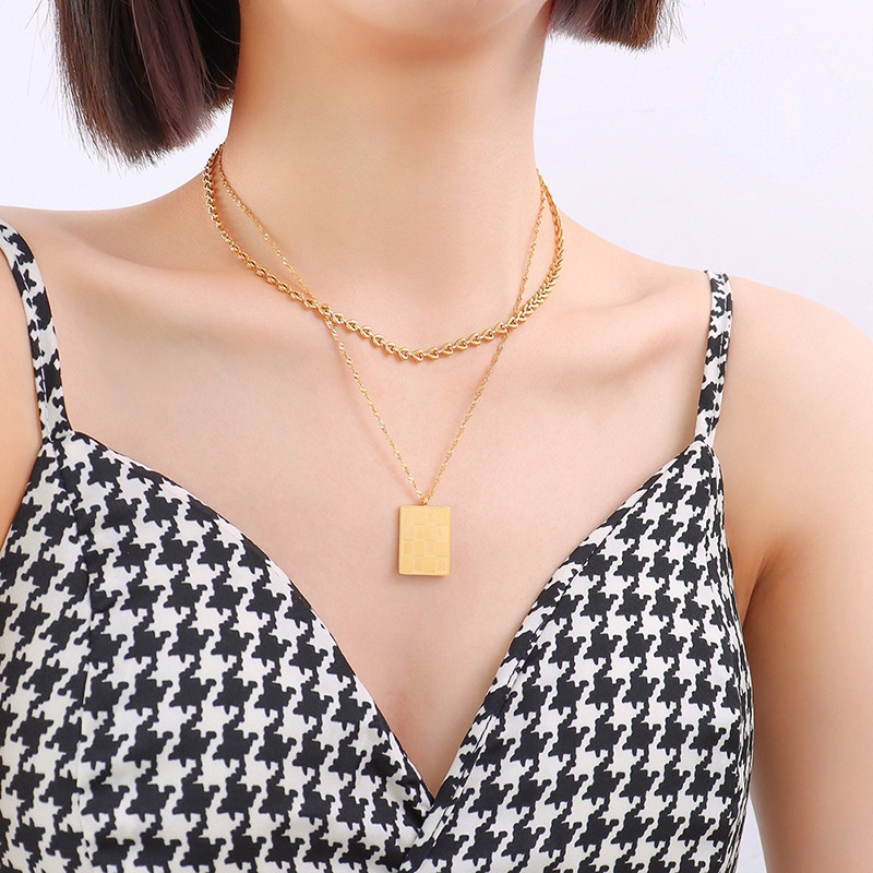 Vintage Style Chessboard Texture Pendant Necklace