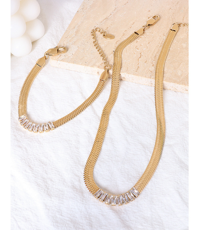 Blade Chain Splicing Diamonds Choker & Bracelet Set
