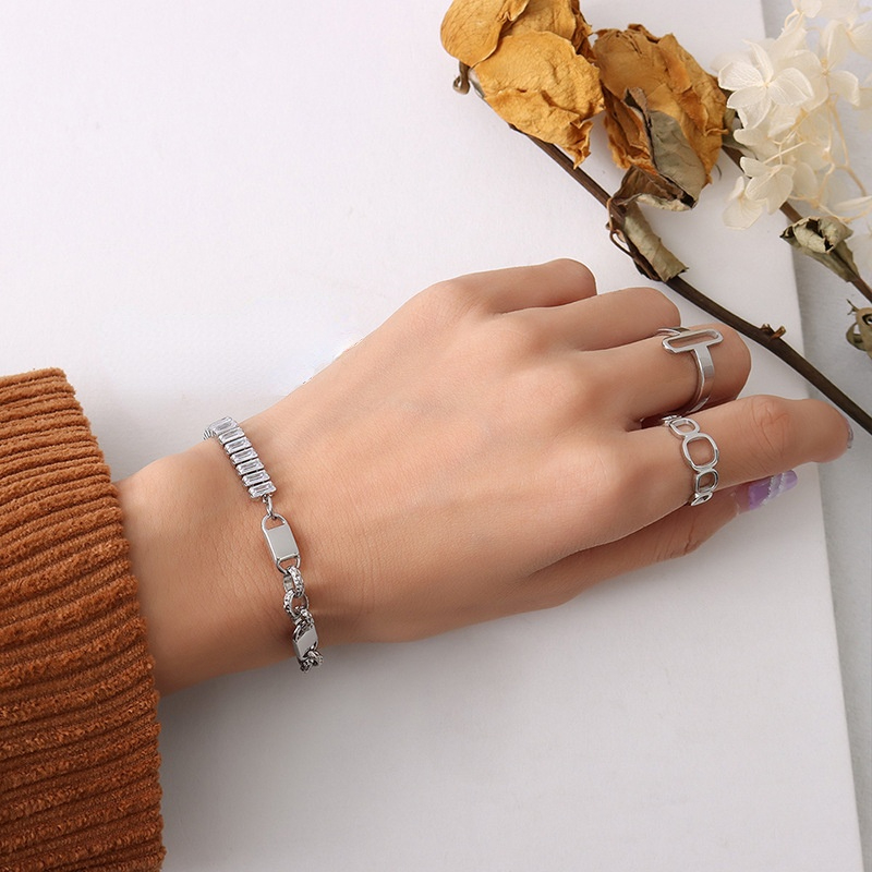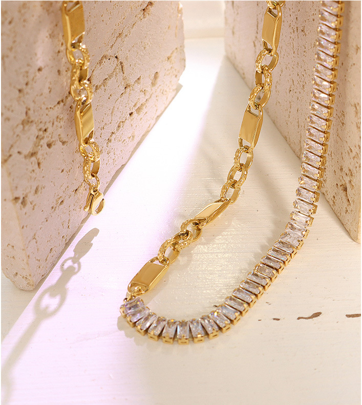 Square Shape Diamonds Splicing Asymmetric Chain Necklace & Bracelet Set